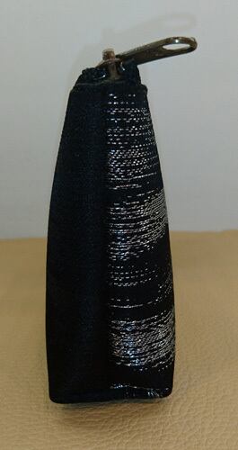 撥水加工済み 絹織物西陣織ポーチ 鳥獣戯画 銀糸 裏 黒