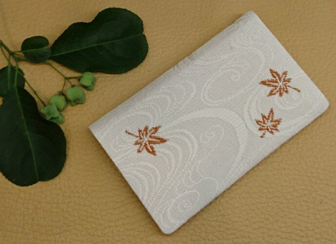絹織物西陣織名刺・カード入れ 白地に紅葉 中地紫