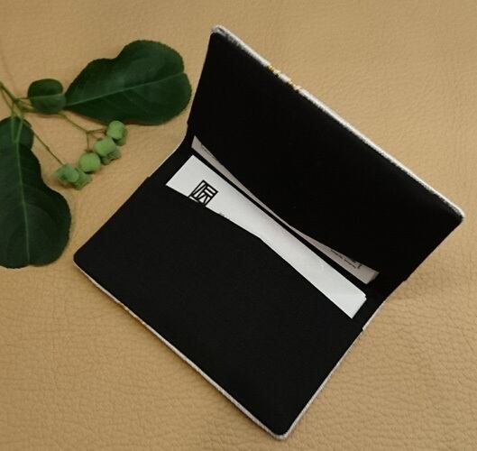 絹織物西陣織名刺・カード入れ 白地 縦線金糸 中地黒