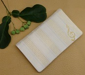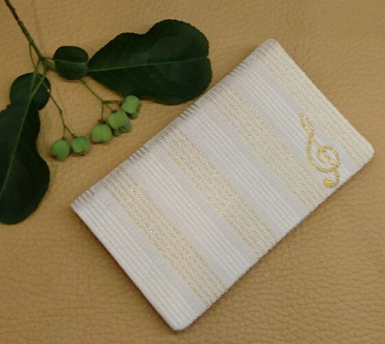 絹織物西陣織名刺・カード入れ 白地に金糸音符 中地黒