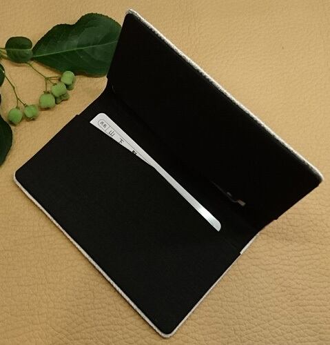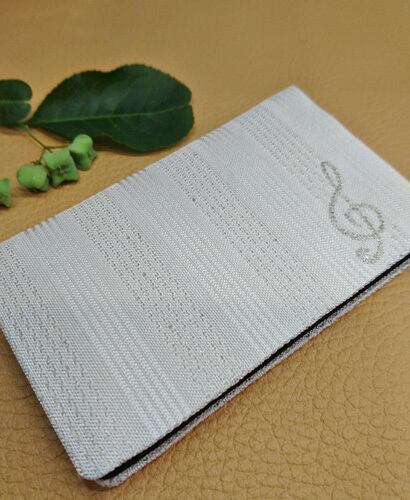 絹織物西陣織名刺・カード入れ 白地に銀糸音符 中地黒