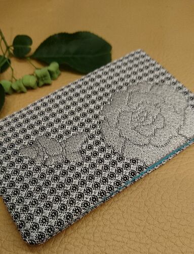 絹織物西陣織名刺・カード入れ 黒白地薔薇に蝶々銀糸 中地ブルー
