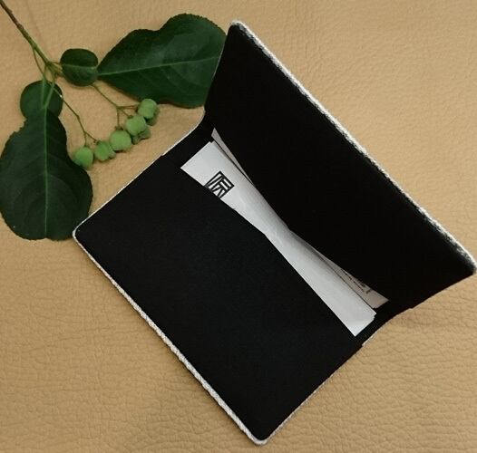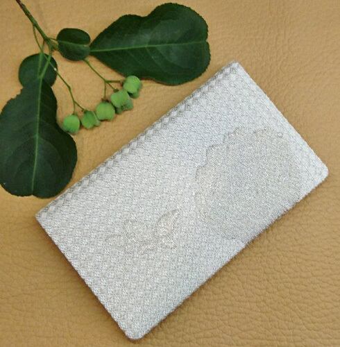 絹織物西陣織名刺・カード入れ 白地薔薇に蝶々銀糸 中地黒