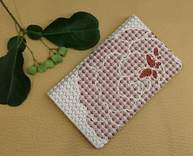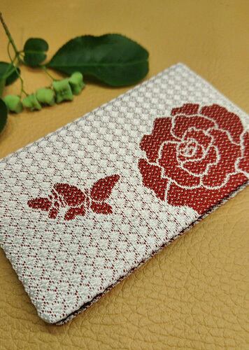 絹織物西陣織名刺・カード入れ 白地薔薇に蝶々赤 中地黒