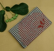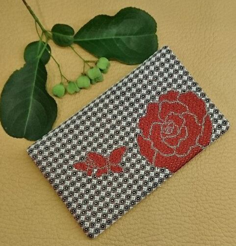 絹織物西陣織名刺・カード入れ 黒白地薔薇に蝶々赤 中地黒