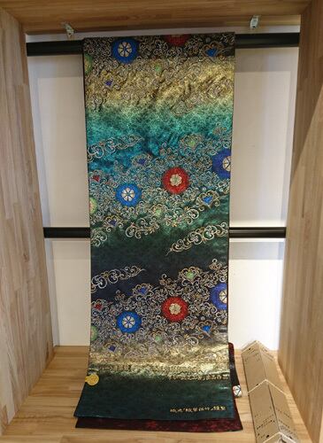 7枚目の写真の袋帯と同じ織職人と機で縦糸・横糸も同じ糸で織り上げた商品です。