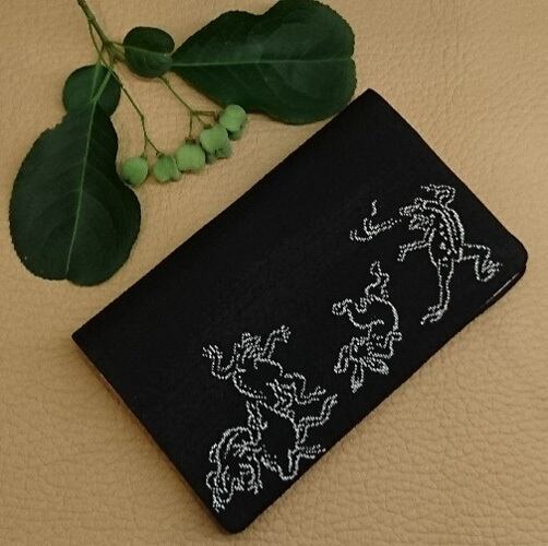 絹織物西陣織名刺・カード入れ 鳥獣戯画 黒地銀糸 中地ピンク