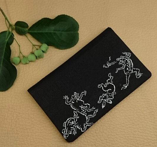 絹織物西陣織名刺・カード入れ 鳥獣戯画 黒地銀糸 中地ブルー