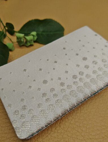 絹織物西陣織名刺・カード入れ 白地に銀糸水玉 中地ブルー