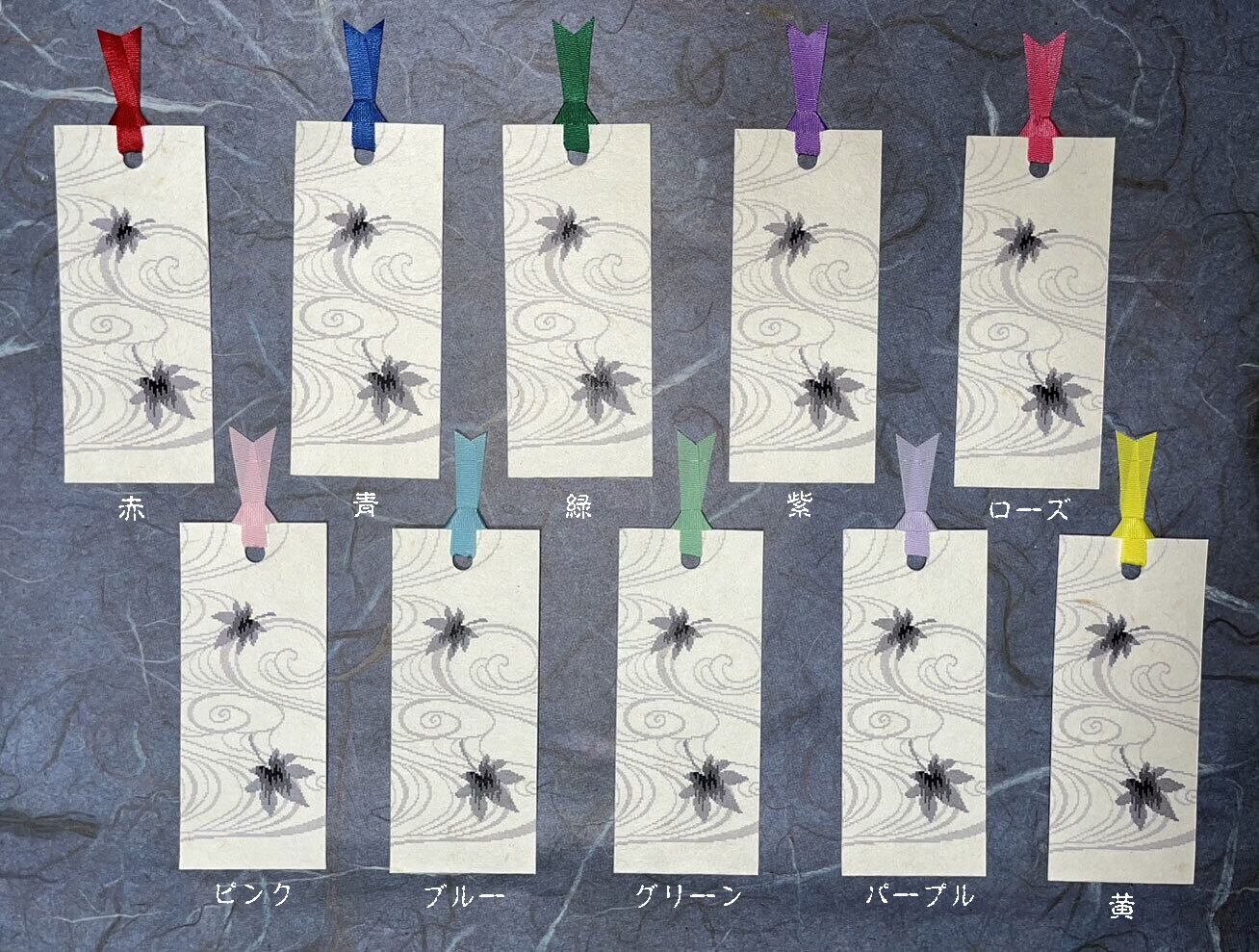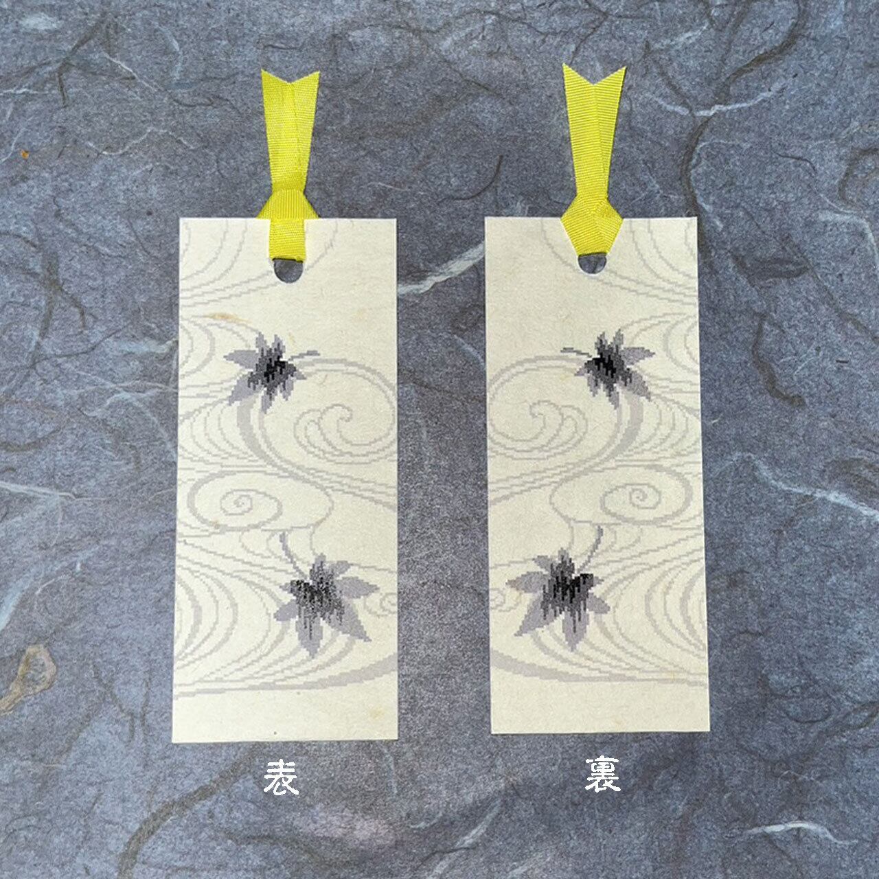流水と紅葉を手漉き和紙に印刷したしおりです。