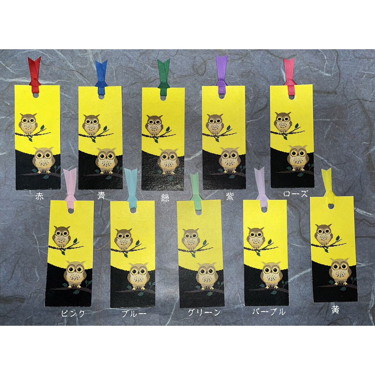 ふくろうを手漉き和紙に印刷したしおりです。