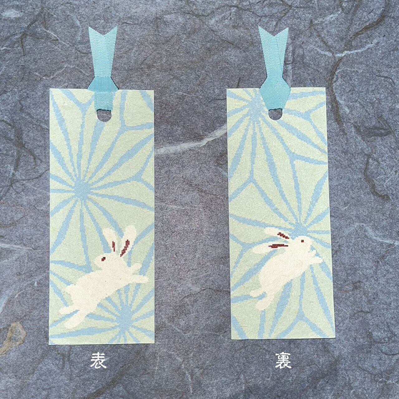 和の風情漂う和紙しおり。兎や麻の葉文様が描かれたブルーのデザインは、和やかな気持ちを届けてくれます。